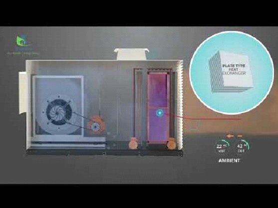 - Conventional FAHU relies entirely on mechanical cooling, making it energy intensive when handling large volumes of fresh air.